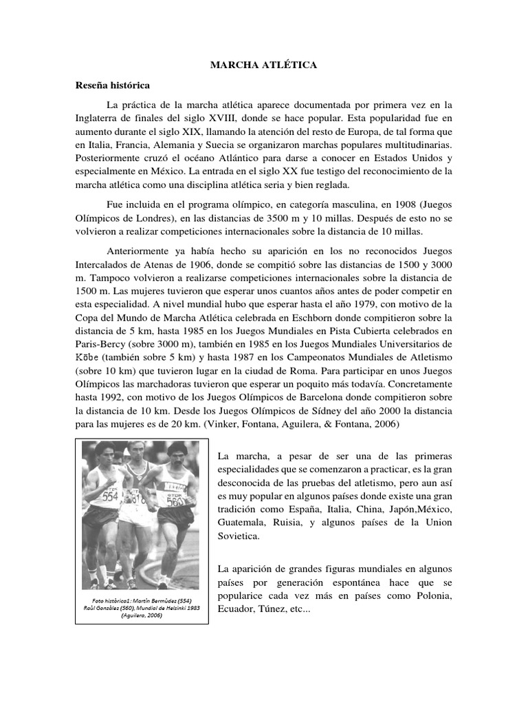Todas las noticias sobre marcha atlética publicadas en el país. La marcha atlética es una disciplina deportiva de la rama del atletismo en la cual se camina a un paso acelerado pero sin correr, por la marcha atlética tiene un paso técnico definido por su paso suave. Los atletas tienen que ser avisados cuando, por su modo de progresión. Reglamento de la marcha atletica es muy importante porque nos enseña. 0 calificaciones0% encontró este documento útil (0 votos).