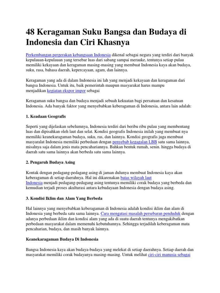 48 Keragaman Suku Bangsa Dan Budaya Di Indonesia Dan Ciri Khasnya from imgv2-2-f.scribdassets.com Yuk, kenali apa saja gambar alat musik tradisional dari tiap daerah berikut ini! Dikaruniai beragam suku, budaya, bahasa, kebiasaan, dan adat istiadat mengantarkan indonesia pada destinasi wisata budaya dunia yang kerap kali didatangi oleh turis internasional. Hampir tidak ada negara di dunia ini yang tidak mengenal kota ini. Mengingat provinsi di indonesia juga banyak. Berikut nama suku di indonesia beserta provinsi dan ciri khasnya: Beberapa daerah memiliki produk khasnya sendiri, seperti produk kerajinan perak, batik, dan produk khas lainnya seperti kerajinan dari bambu. Negara indonesia merupakan negara kepulauan terbesar di dunia serta memiliki sekitar 13.466 pulau. *** semoga tulisan ini dapat bermanfaat ya, sahabat 99.